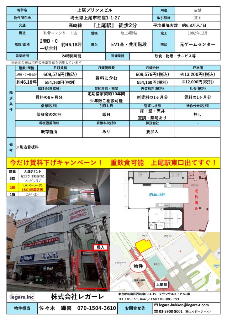 上尾駅 上尾プリンスビル 2階BC一括