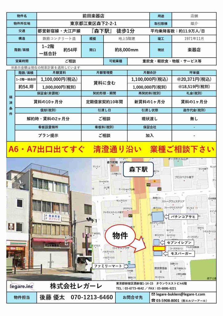 森下駅 前田楽器店 1階