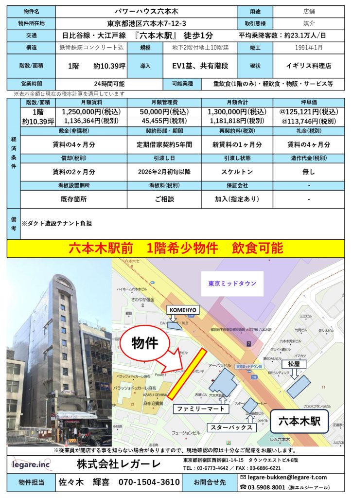 六本木駅 パワーハウス六本木 1階
