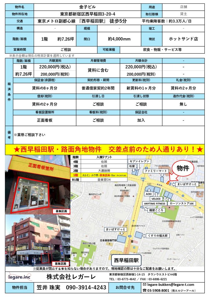 西早稲田駅徒歩5分!平均乗降客数:約3.3万人/日