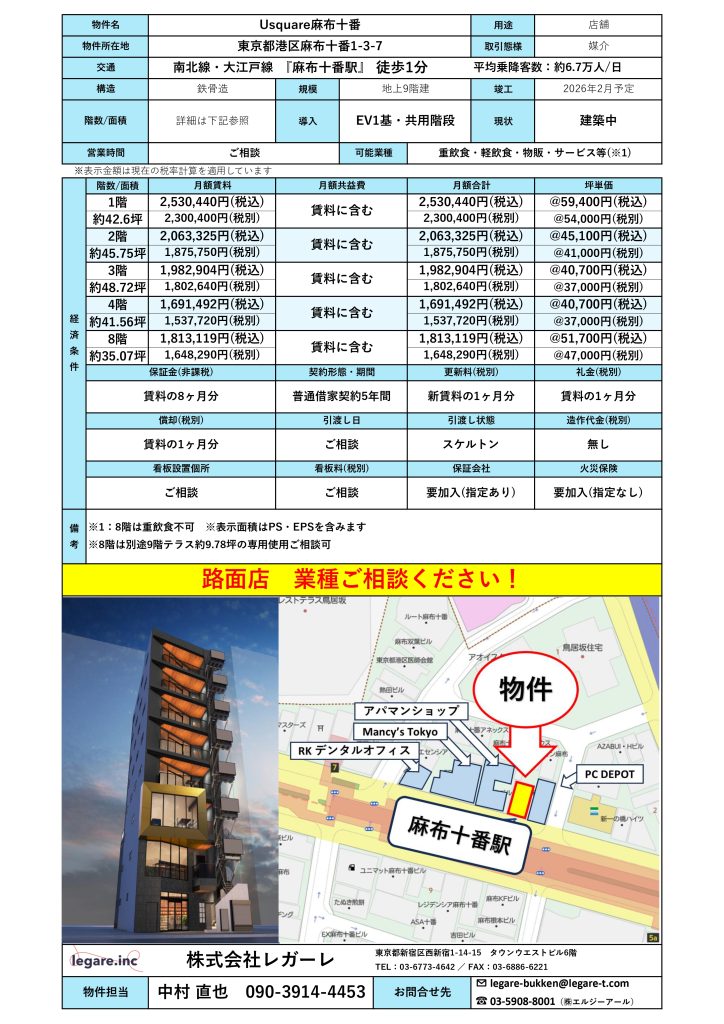 麻布十番駅 Usquare麻布十番 1-4.8階