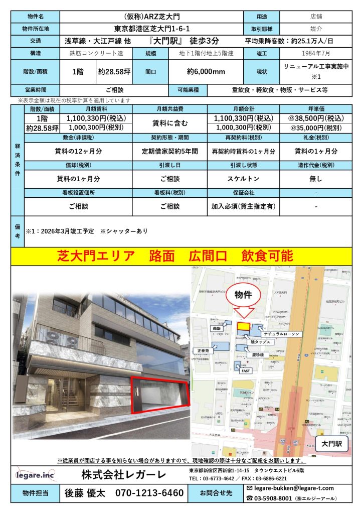 大門駅 (仮称)ARZ芝大門 1階