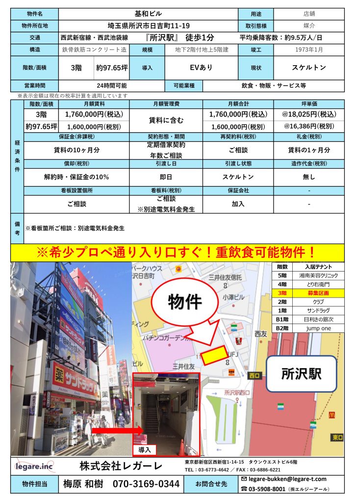 所沢駅 基和ビル 3階