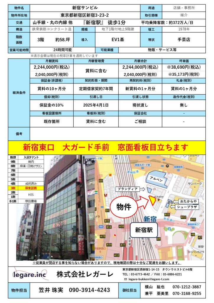 新宿駅徒歩4分!平均乗降客数:約372万人/日