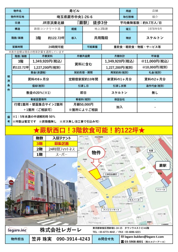 蕨駅徒歩3分!平均乗降客数:約9.7万人/日